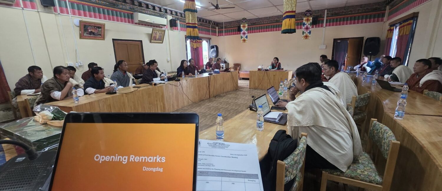 The 4th Dzongkhag, Drungkhag, and Gewogs Monthly Sector Head Coordination Meeting took place today at DT Hall, uniting Dzongdag, Drungpa, Gups, Mangmi, GAO, and sector heads.